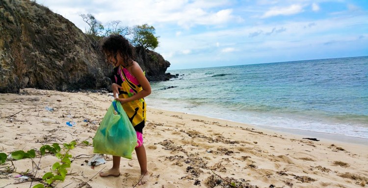 Petit cours écolo pour préserver la planète aux filles, ce n’est pas de trop, au vu de la grande négligence des locaux qui polluent énormément !!!! Deux sacs pleins de déchets à craquer trouvés sur 1m2.