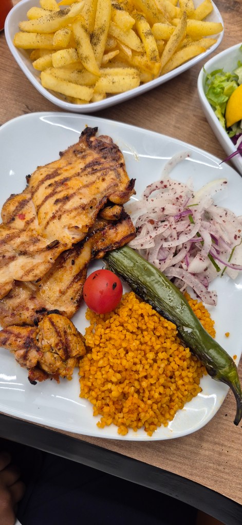 Pause déjeuner dans le charmant village de Göynük excellent repas au Kirmizi et Kasap Izcara restaurant.